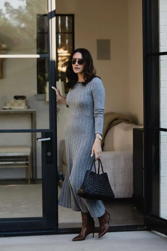 This combination is perfect for everyday wear. A midi sweater dress styled with chic boots feels effortless, comfortable, and easy to dress up or down.