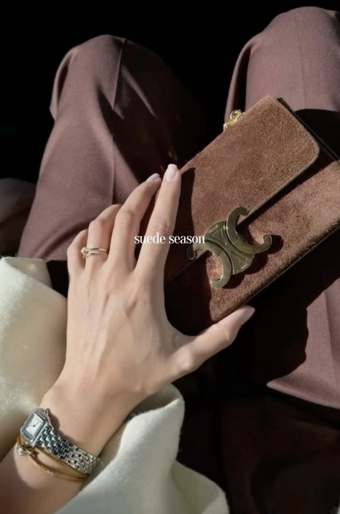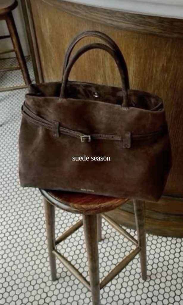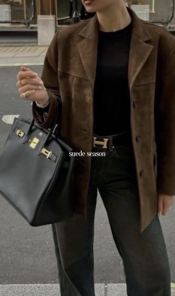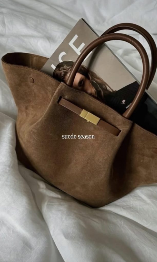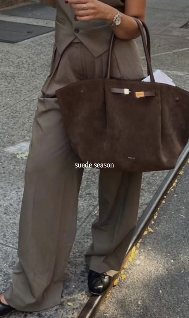 Suede bags are the perfect accessory to add a touch of fall and winter texture to any look. Whether you’re carrying a structured top-handle, a slouchy shoulder bag, or a chic crossbody, suede instantly brings warmth and richness to your outfit. It’s an effortless way to elevate even the simplest jeans-and-sweater combo. And a timeless material that feels especially luxe during the colder months.