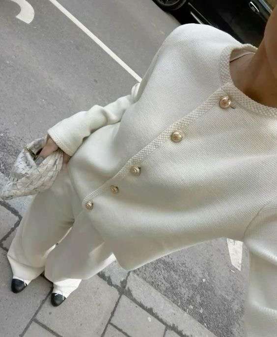 I love it in knitwear first. A soft sweater or cardigan in Cloud Dancer instantly brightens darker winter layers and transitions beautifully into spring. I also gravitate toward Cloud Dancer in relaxed trousers, button down shirts, and lightweight layering pieces.