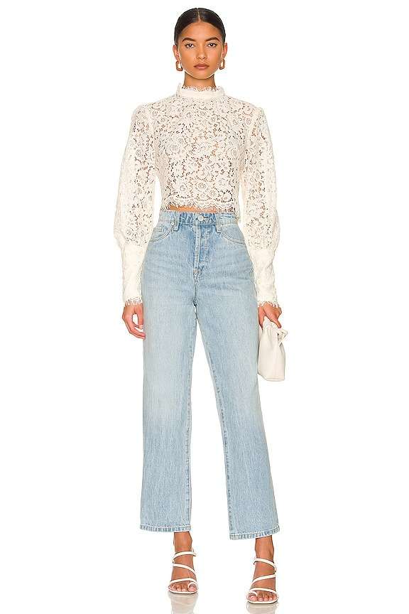 Classic White Lace Top With Straight Leg Jeans