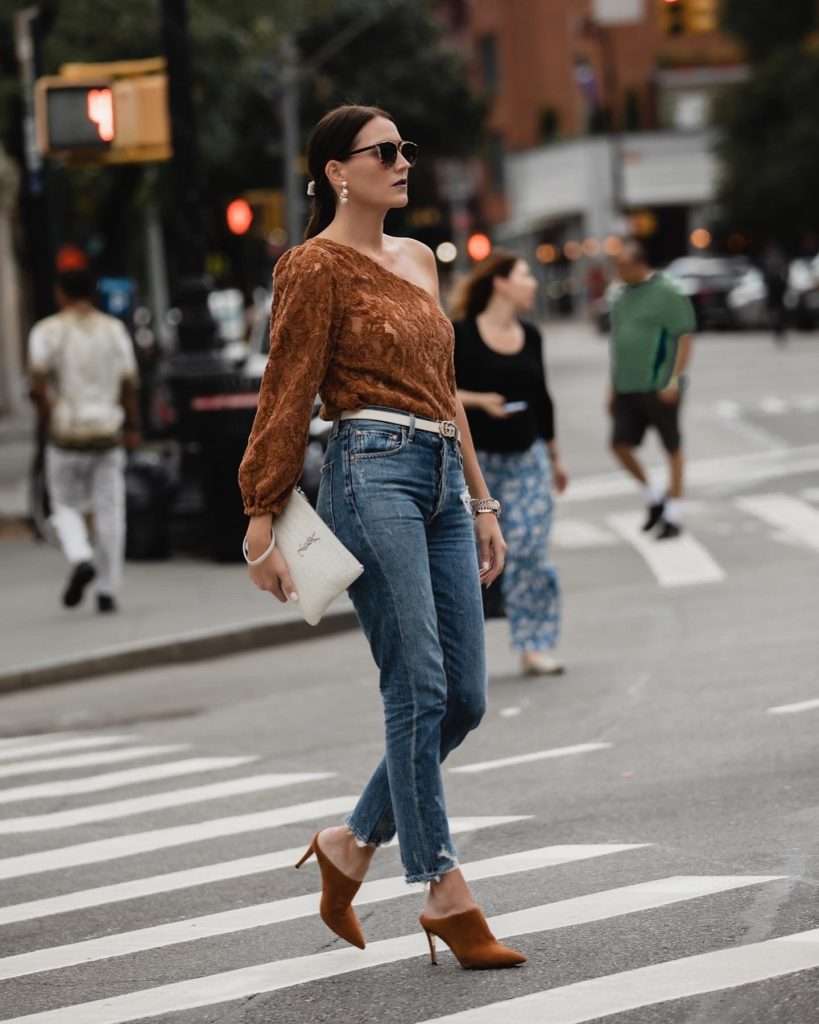 Proportion matters more than most people realize when learning how to style denim with lace. If your lace top is fitted and delicate, slightly looser denim like straight leg or wide leg jeans creates balance.