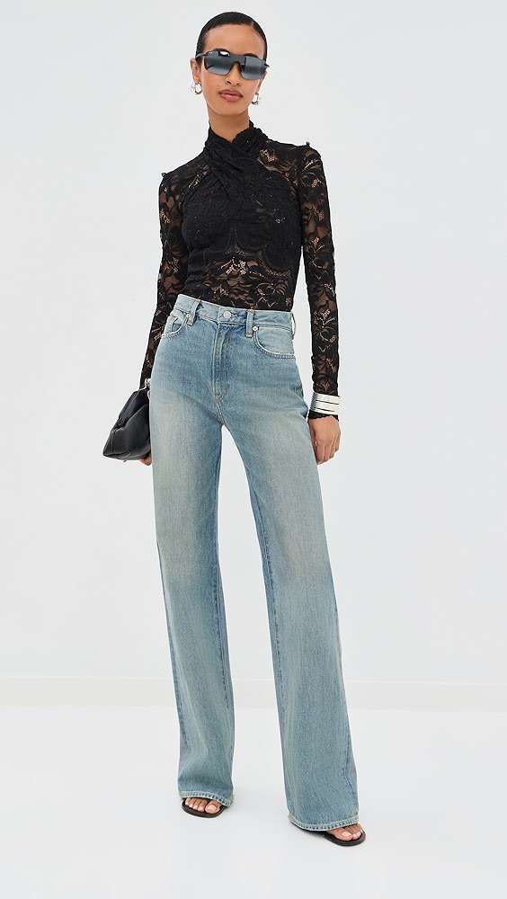 Feminine Lace Blouse With Wide Leg Denim