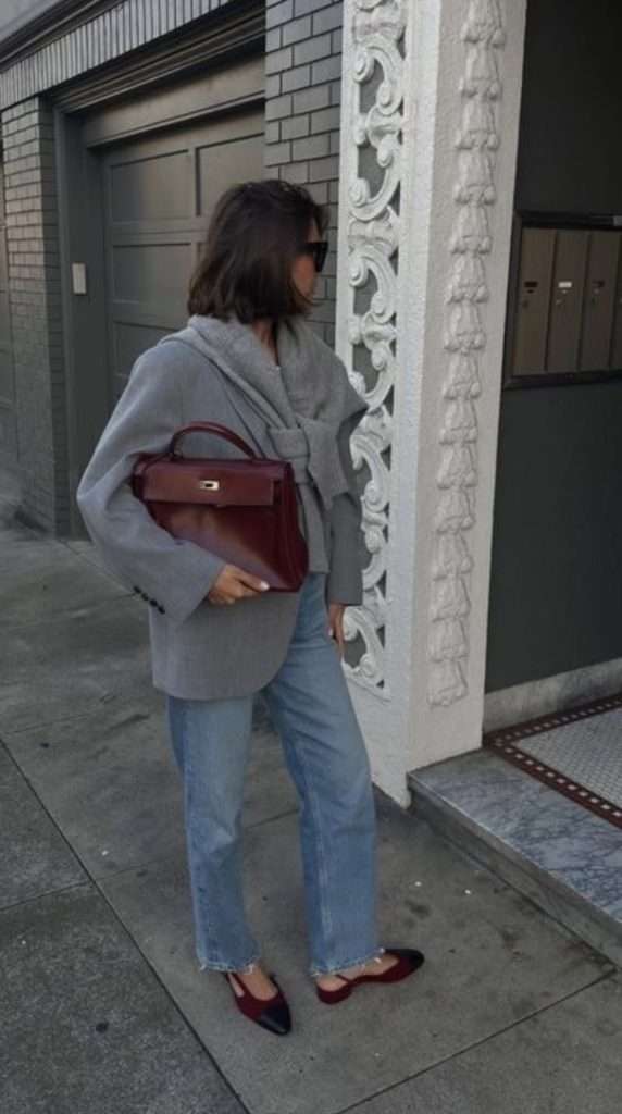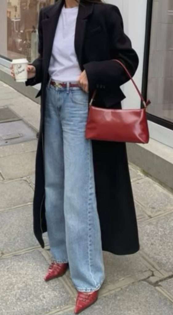 One of my favorite casual chic outfit combos for February is classic blue jeans paired with a chic scarf jacket, or a long coat for that effortless winter elegance. To elevate the look, I love adding a pop of burgundy through accessories like a structured bag or chic shoes. It’s such a simple yet stylish way to bring in a romantic touch for the month. The mix of timeless denim with rich burgundy feels both classic and fresh. Making it a perfect go to for February outfits!