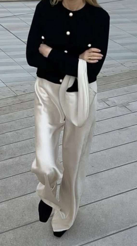 I’m also loving the classic black and white color combo for February. It’s effortlessly chic and perfect for any occasion. For a polished workwear look or a stylish outfit for going out with friends, try pairing black trousers with a cozy yet refined white sweater. This timeless pairing feels crisp and elevated, and you can complete the look with your favorite black bag for a sleek, put-together finish. It’s a simple yet sophisticated go-to outfit for winter!