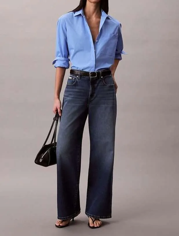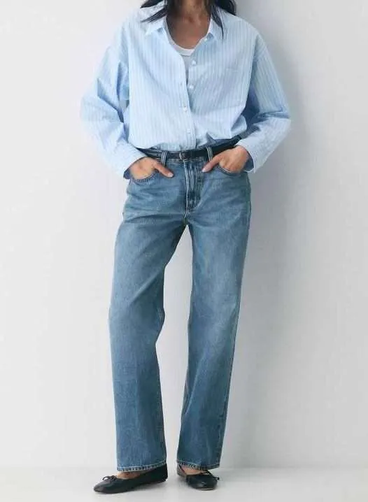 A classic button down styled with relaxed straight denim creates an overall effortless frugal chic look.
