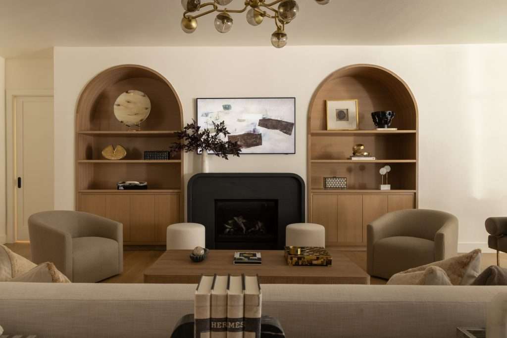 If you prefer a bit more definition, this version of organic modern interiors introduces subtle contrast through black or deep espresso accents while still maintaining the neutral tone foundation.