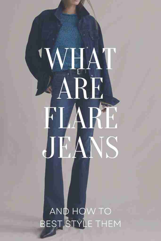 Flare jeans are a denim silhouette that fits closer through the waist and thighs before gradually widening from the knee down. Unlike straight legged or straight leg jean styles that fall straight from hip to hem, flare jeans create movement and balance by widening at the bottom.