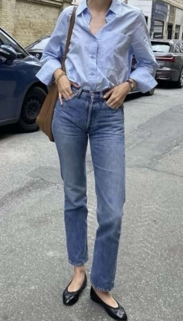 Denim on denim is perfect for this season it’s warm enough for chilly days but still light enough to feel spring ready. Plus, it’s easy to add a pop of color to brighten up the look. Layer a cozy sweater over your denim shirt or denim jacket for extra warmth, and then style the outfit with chic ballet flats for a classic touch or trousers for a more polished vibe. It’s overall a versatile combo that works for everything from casual weekends to stylish early spring outings!