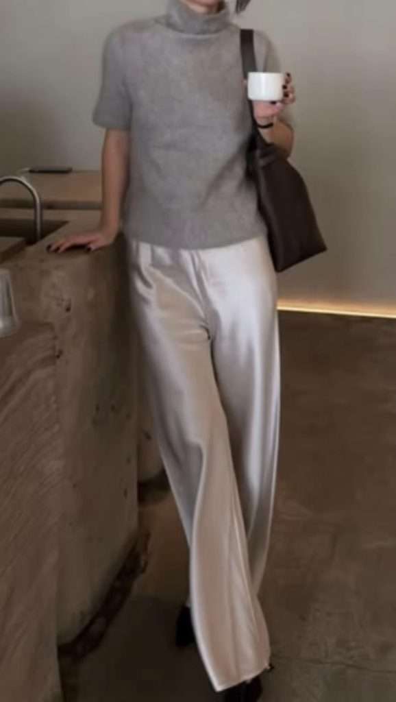 Silk details are such an easy way to elevate transitional winter to spring outfits. Whether it’s a silk skirt, pants, shorts, or a dress, the soft sheen adds instant elegance and movement. Pair your silk pieces with a cozy sweater or light jacket for warmth, then gradually lighten up your layers as the weather shifts. It’s a simple way to look polished while still feeling comfortable.