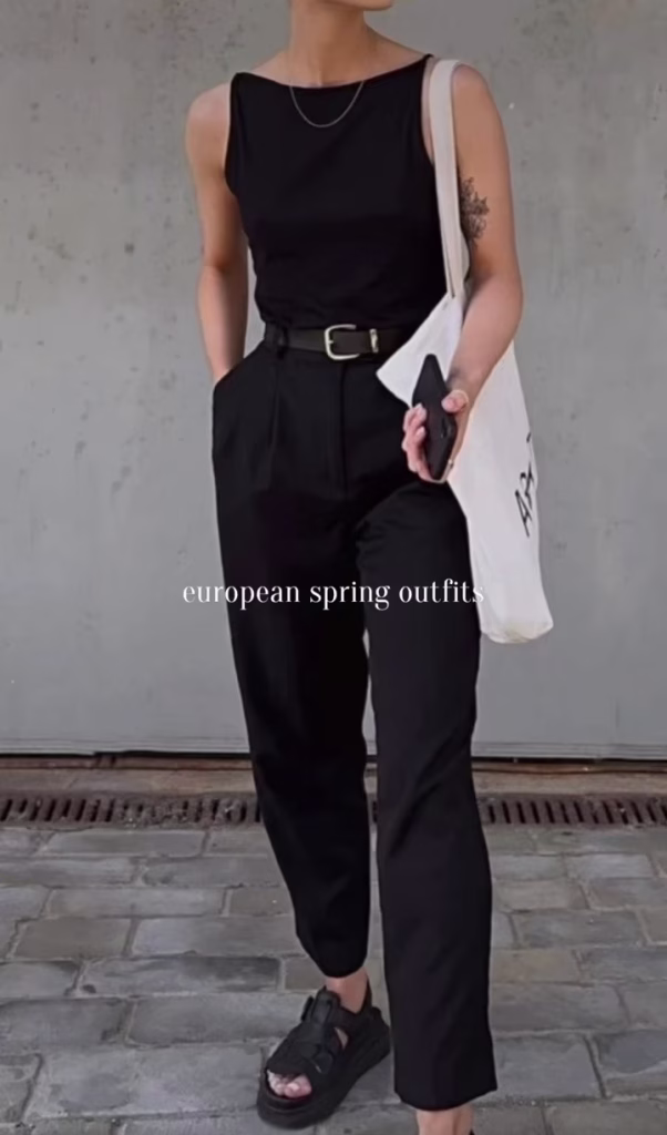 1. black trousers + tank