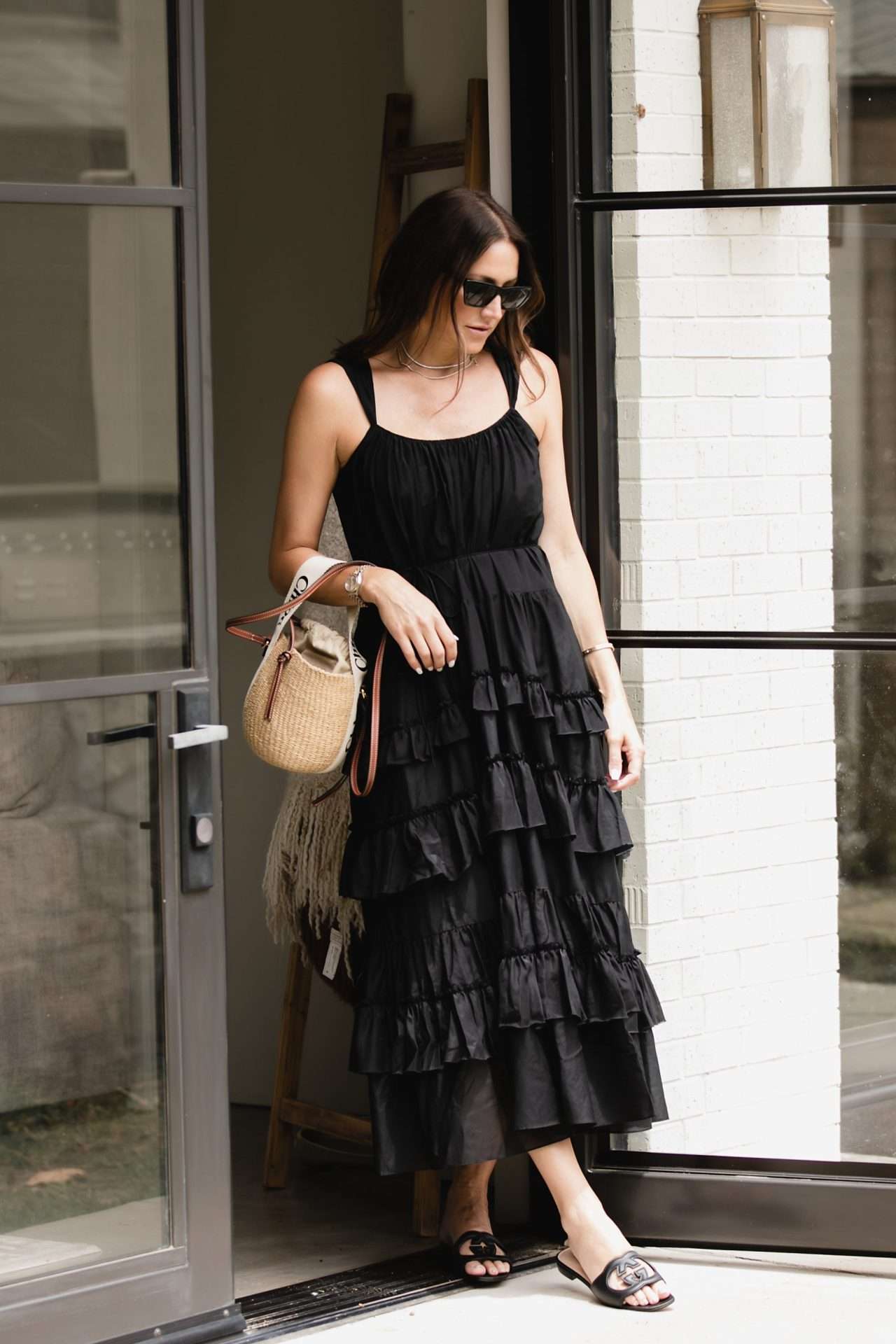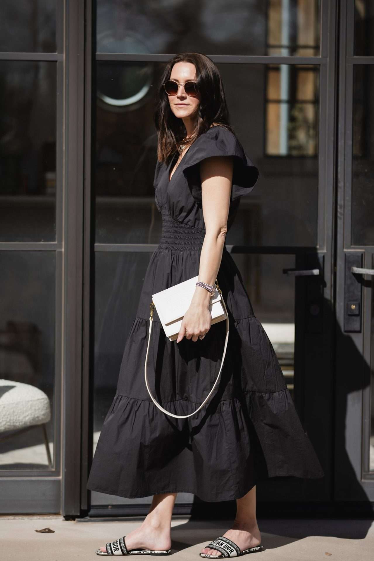 A black dress remains one of my favorite dinner staples. It works across many dining environments, from moderately priced restaurants to spots with a more upscale ambiance. Also, keep accessories minimal and let the simplicity feel elegant.