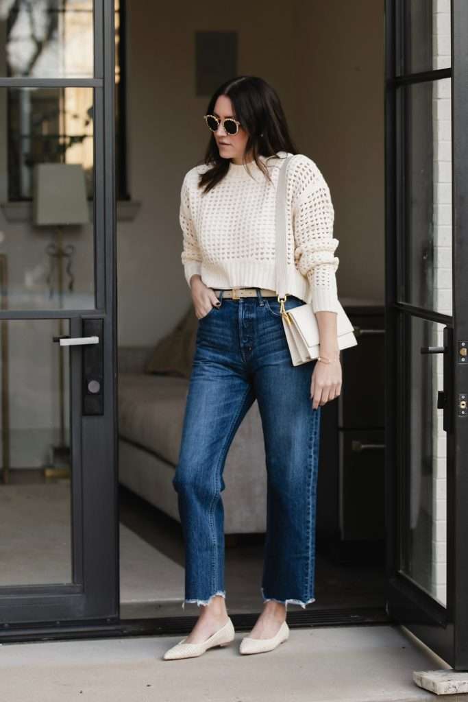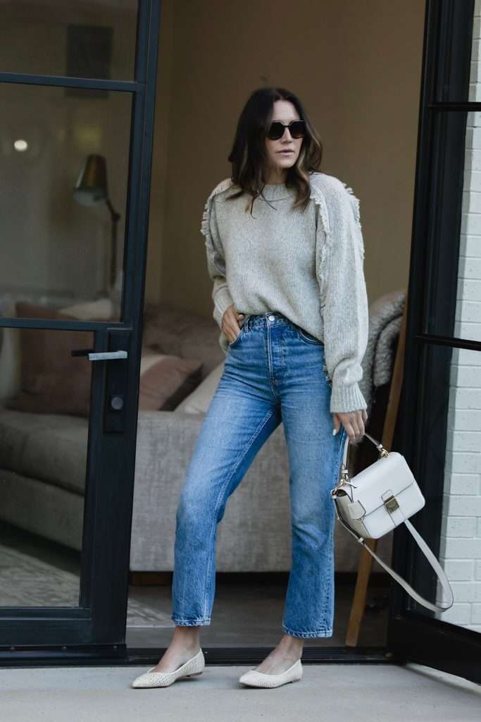 A soft sweater paired with classic denim feels cozy but intentional. Add ankle boots or simple jewelry for an elevated finish.