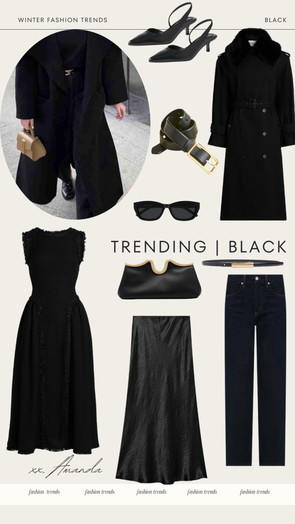 Classic black is a color that never fails, especially in winter. It’s timeless, sophisticated, and effortlessly chic. Perfect for coats, tailored pants, jeans, scarves, or boots, black adds a polished touch to any outfit. Whether styled for everyday wear or an elegant evening look, it’s a versatile staple that remains a go-to season after season. Black is truly the definition of timeless fashion.