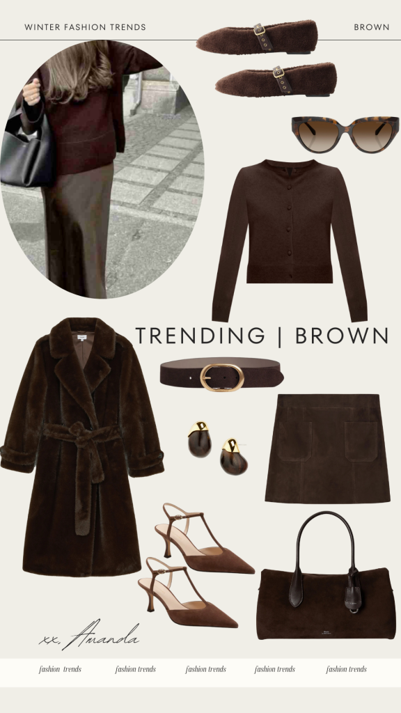 Brown is a major trend for winter 2025, with all shades looking chic and timeless. From rich chocolate to soft tan, this versatile color adds warmth and sophistication to any outfit. Pairing different shades of brown together creates a chic tonal look that feels effortlessly stylish. Brown is perfect for a cozy sweater, tailored pants, or even a scarf or coat. It’s a classic choice that never goes out of style!