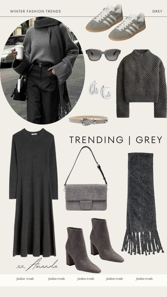 I love adding grey tones to my winter outfits because they are timeless and chic. Whether it’s in a sleek monochrome look or as individual pieces, adding a touch of grey is a great way to elevate any look this winter.