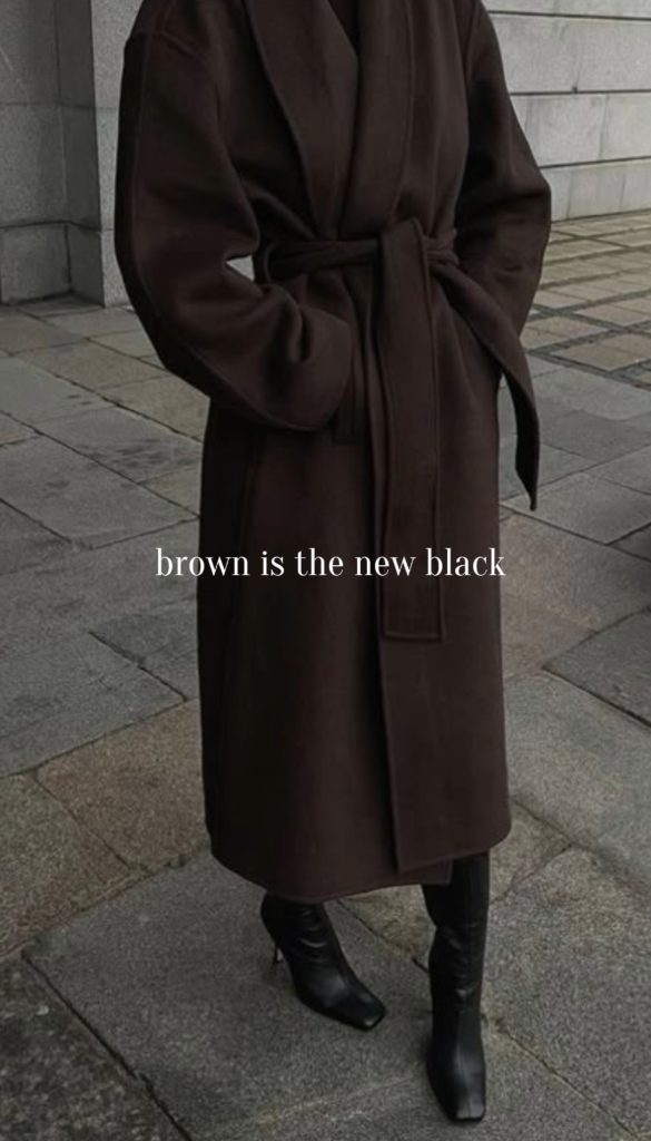 Brown is truly the new black this winter, and it’s taking over in the chicest way. Deep chocolate brown is especially everywhere, showing up in coats, trousers, sweaters, boots, and bags. This rich shade instantly elevates any winter outfit, giving it a timeless and luxurious feel while still being effortless to style. Whether you go for a full monochrome moment or mix different brown pieces throughout your look, brown outfits are one of the easiest and most stylish trends to embrace for 2025–2026.