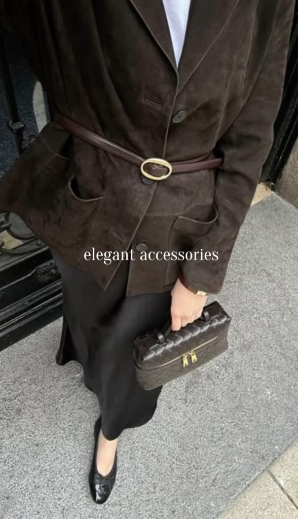 Elegant accessories are shaping winter style this season, adding refinement and intentional detail to every outfit. Belts worn over blazers, tailored coats, or knit dresses create a polished, cinched look that feels both modern and timeless. Chic scarves, delicate bracelet stacks, and subtle jewelry accents elevate even the simplest winter layers. And of course, structured bags and classic silhouettes pull everything together. These elegant touches make your cold-weather outfits feel thoughtful, elevated, and effortlessly stylish.