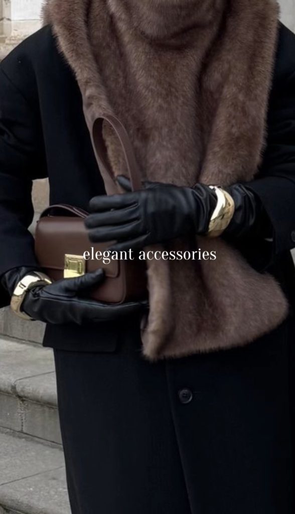 Minimalist accessories are having their moment this winter, and I couldn’t be happier. Quiet luxury is always a go-to favorite of mine. This trend embraces timeless pieces like elegant watches, classic brooches, chic sunglasses, and beautifully crafted bags in neutral tones like cream, black, and brown. These accessories are not just stylish. They’re investments you’ll wear on repeat for years to come. It’s all about choosing quality, understated pieces that add a touch of sophistication to any outfit.