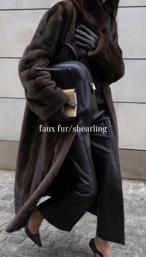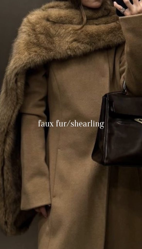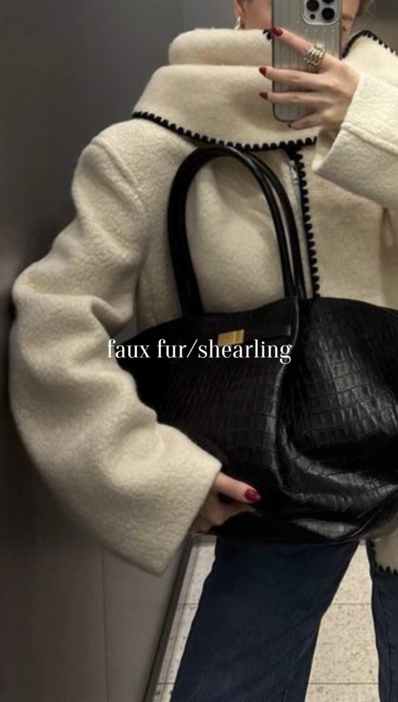 Faux fur and shearling are must-have textures for Winter , bringing warmth, comfort, and a touch of luxury to everyday outfits. Whether it’s a cozy shearling-lined coat, a plush faux fur jacket, or soft accents on scarves and bags, these pieces add instant charm and softness to your winter style. They’re practical for staying warm, but also incredibly chic and so perfect for elevating both casual and dressed-up looks all season long.