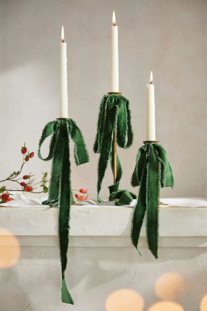 Tie velvet bows at the base of candlesticks or around taper holders for a trending and ultra-elegant detail.